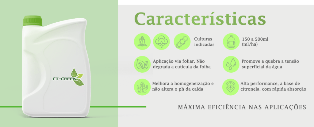 CT-Green é um fertilizante foliar destinado a agricultura de alta tecnologia. Produto natural à base de citronela. Um dos produtos mais completos do mercado, contém óleo essencial de citronela que possui efeito repelente para insetos, contendo nitrogênio e boro, melhorando a nutrição da planta. Garantias:nitrogênio (n) 1,5% (15,57 g/l).boro (b) 0,2% (2,07 g/l).densidade: 1,038 g/cm³. Indicação: pode […]
